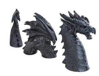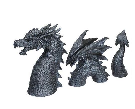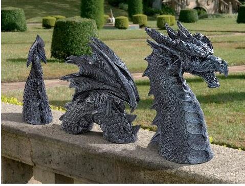 Your neighbors will steer clear when they see this intricately sculpted, more than two-foot-long dragon stretched out in your flower bed. True gothic garden art, this almost life-like Design Toscano dragon sculpture is complete with scales, wings and a treacherous tail. Hand-finished in charcoal gray stone, it arrives in three pieces of quality designer resin.